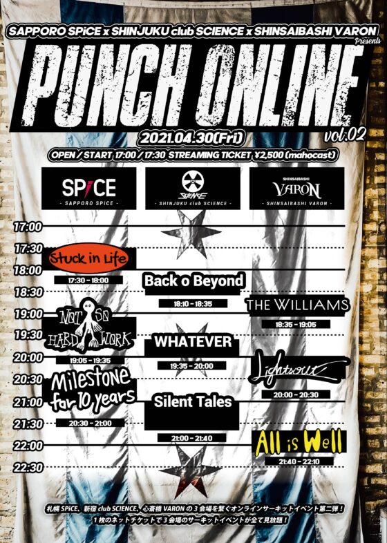 【配信】札幌SPiCE × 新宿 club SCIENCE × 心斎橋VARON 配信サーキット PUNCH ONLINE vol.2