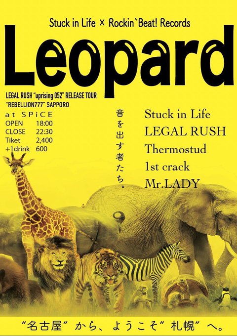 Stuck in Life × Rockin’Beat!Records “Leopard” 〜LEGAL RUSH “uprising 052” RELEASE TOUR “REBELLION777” SAPPORO〜